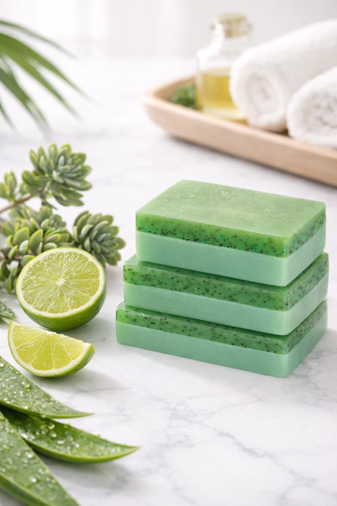 Bright and lively, our handcrafted Lime Goat Milk & Aloe Vera Soap brings a zesty touch to your daily routine. Made with a gentle, SLS-free blend of goat milk and aloe vera soap bases, it creates a smooth, creamy lather that cleanses softly while helping your skin feel fresh, balanced, and comfortable.